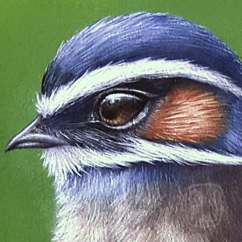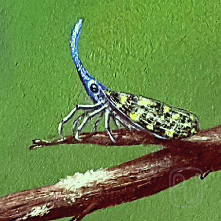 Whiskered TreeswiftA pair of Thailand Lantern Bugs admiring a Whiskered Treeswift. Painted on rectangular wooden pro-panel. It is unframed and hangs on its own. $950.002016SoldWidth: 30.00cmHeight: 50.00cmFraming: Pro-PanelwhiskeredtreeswiftBirdbugslantern